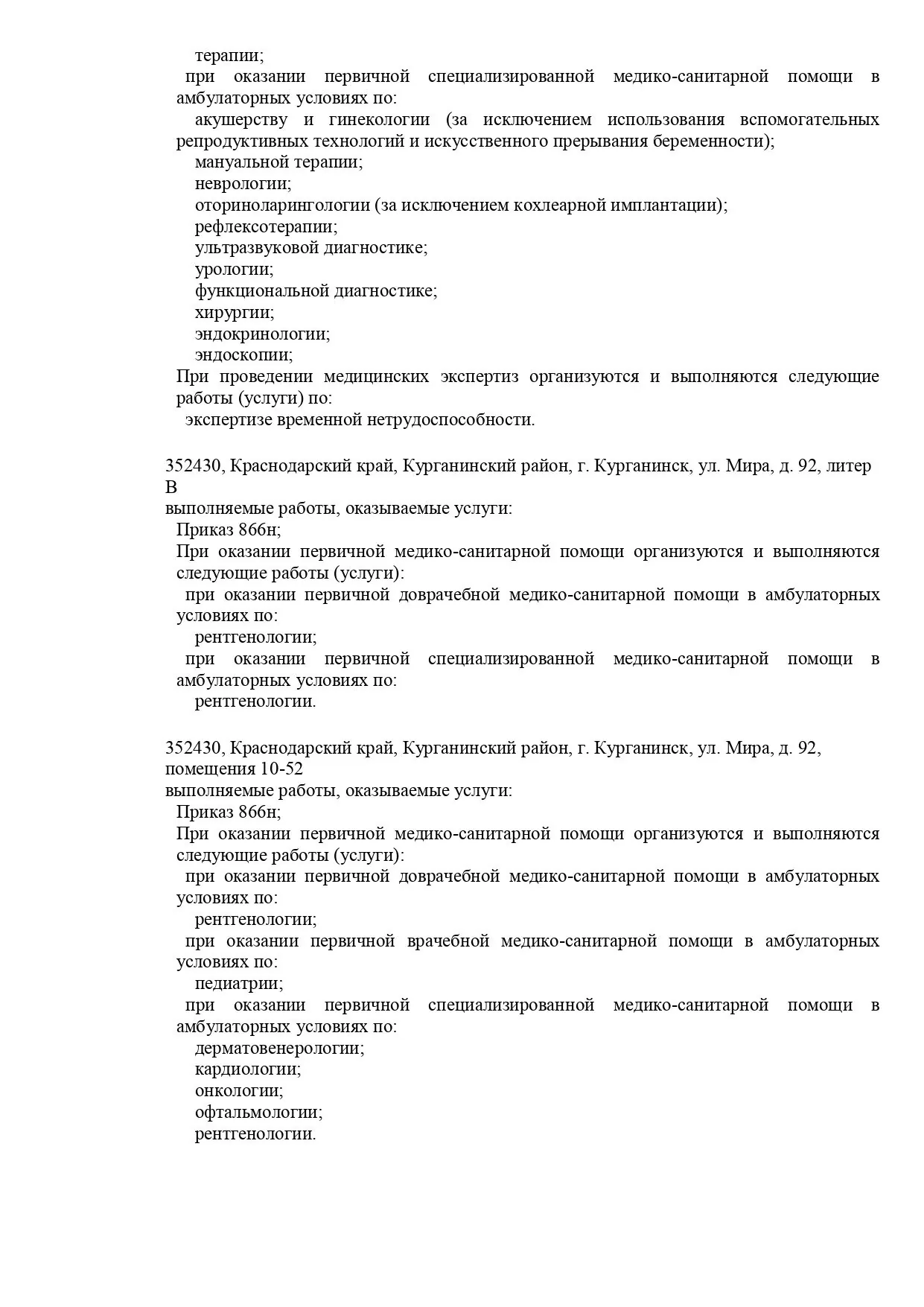 Адрес: 352430, Россия, Краснодарский край, Курганинский муниципальный район, г. Курганинск, ул. Мира, д. 92, помещ. 10;